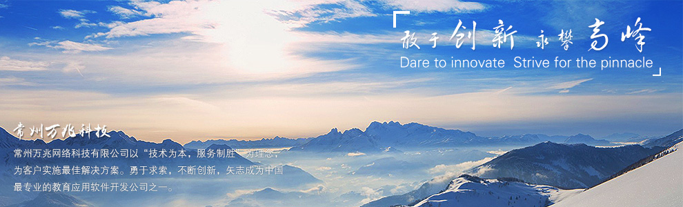 常州萬(wàn)兆網(wǎng)絡(luò )科技有限公司立足于發(fā)揮自身優(yōu)勢,聚集網(wǎng)絡(luò )精英,本著(zhù)“團結協(xié)作、奮力拼搏、勇于創(chuàng )新”的開(kāi)拓精神,以"提高企業(yè)的綜合競爭能力,為客戶(hù)實(shí)施最佳解決方案"為目標,以“技術(shù)為本,服務(wù)制勝”為理念,以全面促進(jìn)電子化辦公為己任,勇于求索,不斷創(chuàng )新,矢志成為中國最專(zhuān)業(yè)的教育應用軟件開(kāi)發(fā)公司之一。